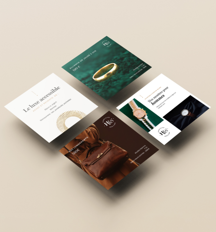 Un univers haut de gamme et percutant créé pour raconter une histoire. Des teintes chaudes et chaleuresue pour humainser et rappeler la seconde main.